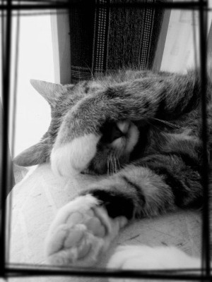P.S. Z toho černého nejsem vůbec nadšená! Dělit se o lidi! O něco, co jsem si vychovala! O něco, co je jen a jen moje! Jakoby nestačilo, že tu s námi bydlí myši! A o tom, že je mají rádi ani nemňouknu! No fajn...dobrá! Budeme-li jíst každý ze své misky a každý spát na svém místě, budeme mít každý své jméno, překousnu to. Mám přece úroveň... Ale to bylo naposledy, co jsem svým lidem povolila nějaké zvíře! Mňau!